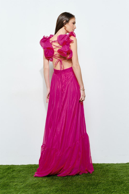 The Fuchsia Ruffle Open Back Gown