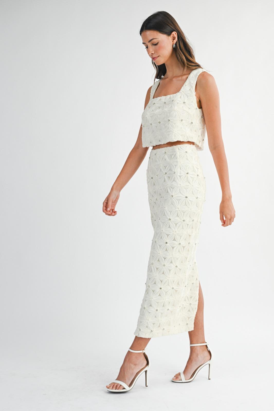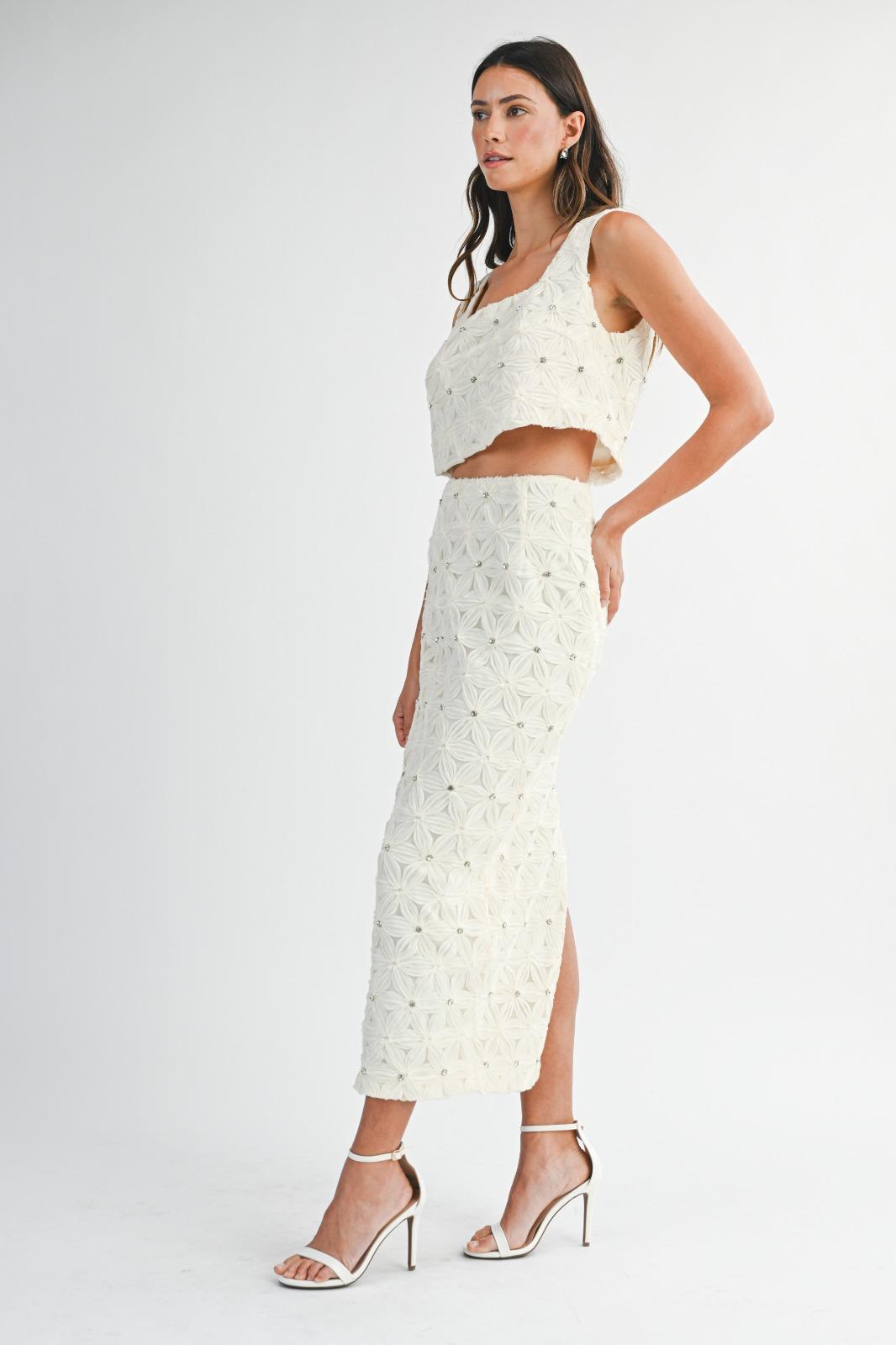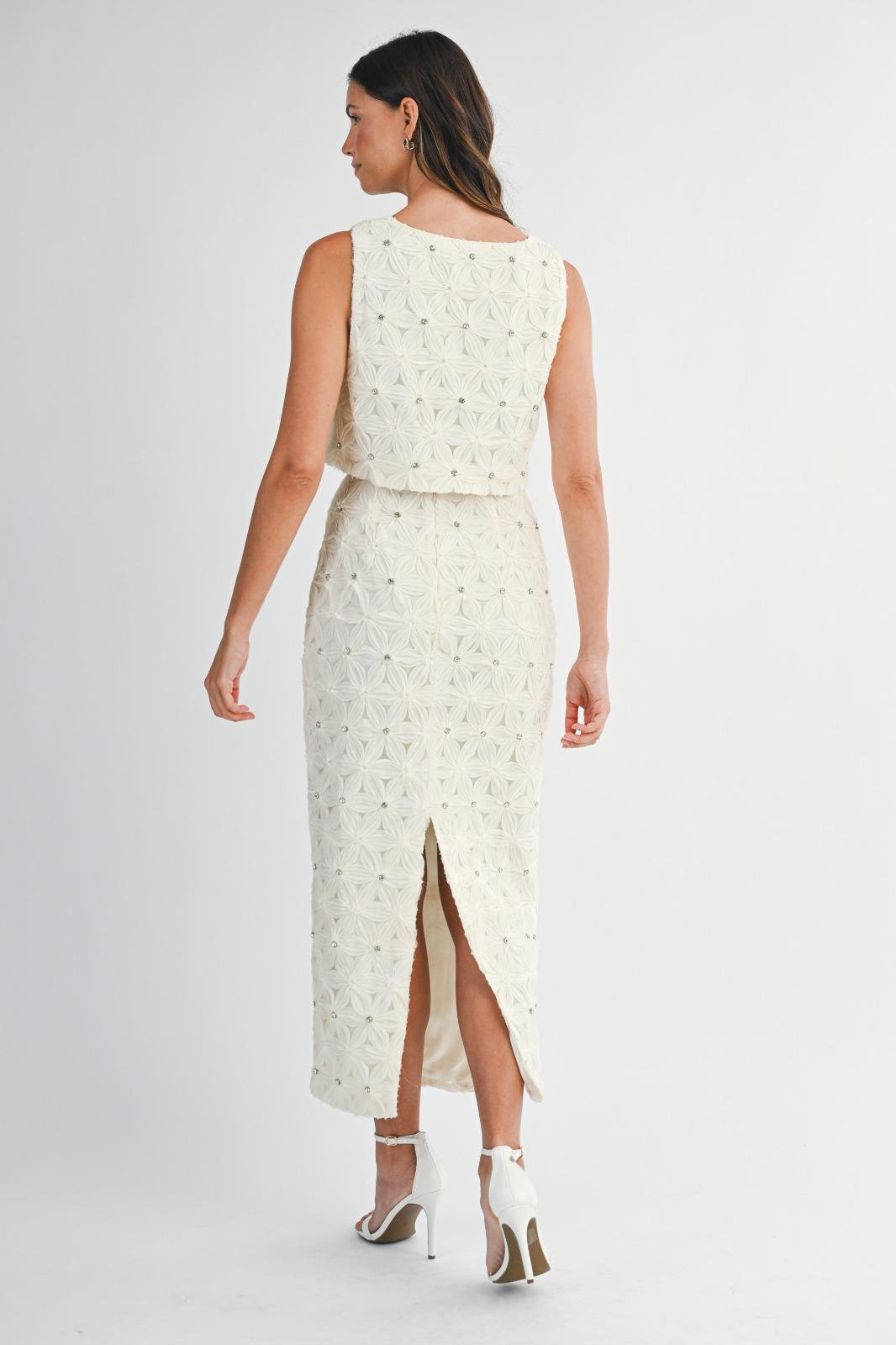 Inspired by the softness of petals, this ensemble combines sophistication with charm. The intricate fabric design enhances every movement, making it a standout look for special occasions.