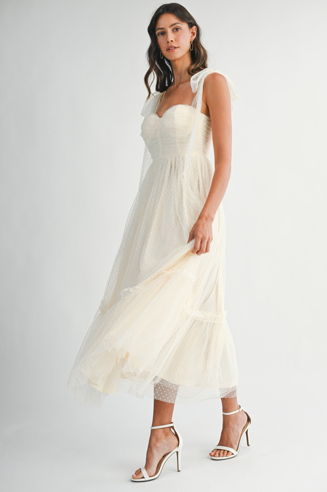 Soft, feminine, and effortlessly ethereal. The Fleur Tulle Dress brings fairy-tale beauty to life with cascading layers of tulle, delicate shoulder ties, and a flattering sweetheart neckline. Whether it’s a garden party or an evening celebration, it’s pure elegance in motion.
